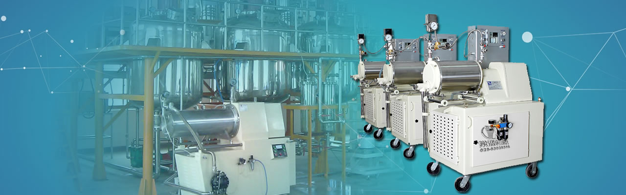 立式砂磨機由機身、主傳動、分散器、送料泵、無級變速器、冷卻系統(tǒng)、電氣控制器等組成。研磨缸為冷卻夾套型設(shè)計,使冷卻水能一進一出,以冷卻砂磨機研磨作業(yè)中產(chǎn)生的溫度。立式砂磨機的研磨作業(yè)是送料泵將經(jīng)過預(yù)分散、濕潤處理的漿液由研磨缸下方往上送進研磨缸內(nèi),研磨珠比重較重會往下掉,使原料在具有壓力的研磨缸內(nèi)產(chǎn)生上下對流,原料在研磨珠間隙中經(jīng)加壓及高速旋轉(zhuǎn)交亙沖擊中,產(chǎn)生乳化、分散、搓揉、研磨等功能。我公司最大承接120L砂磨機。
